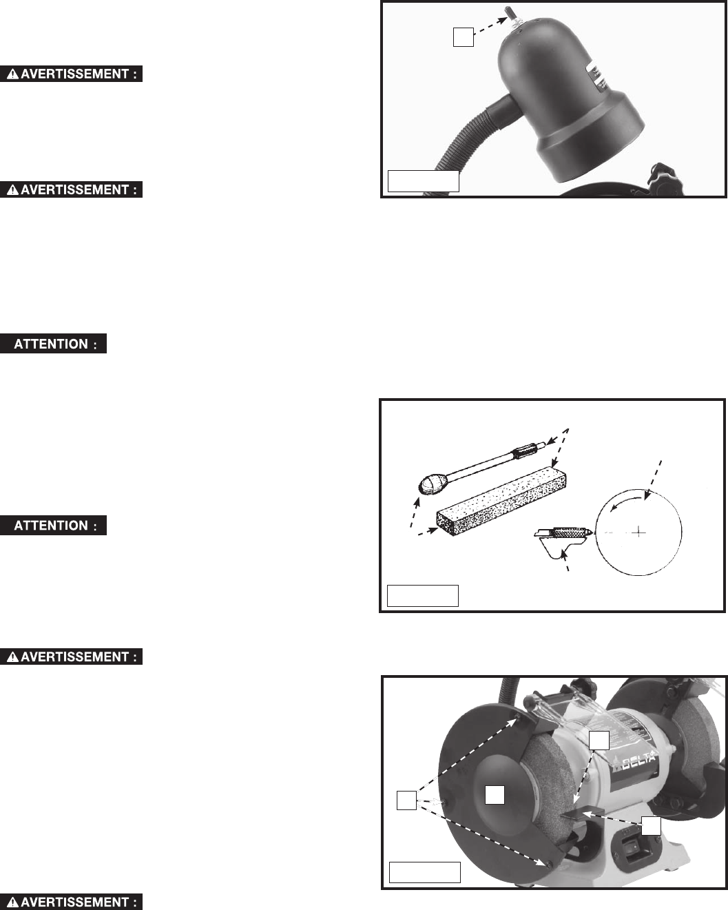 TOUJOURS maintenir un écart de 3,2 mm (1/8 po) ou moins entre la meule et le porte-outil. Régler